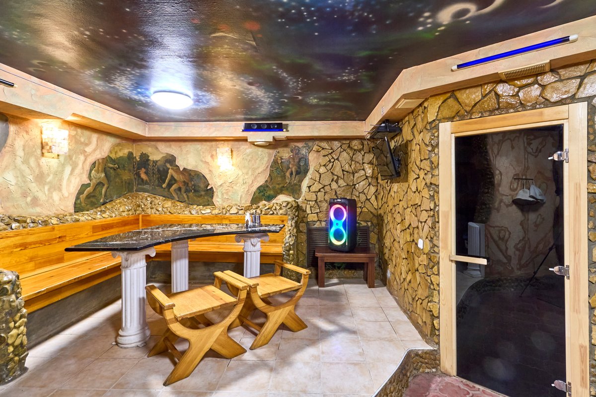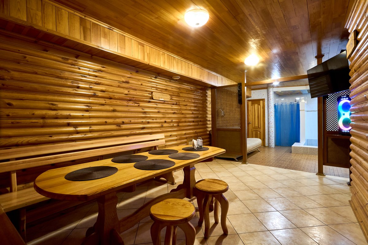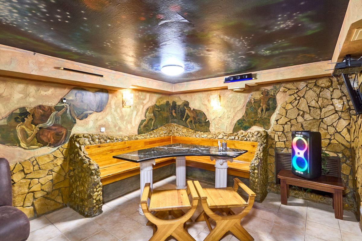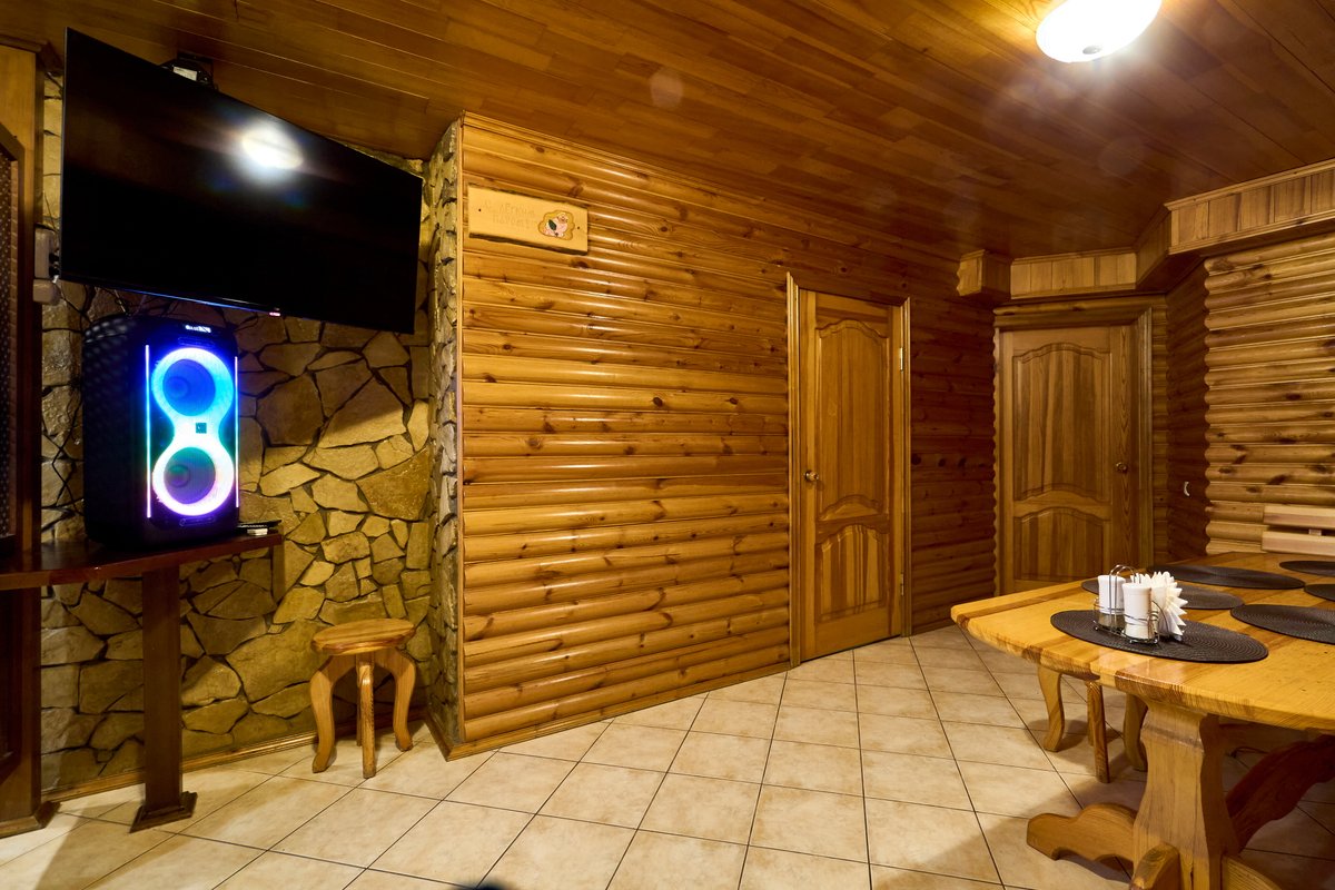 Не хочется в бассейн? Не проблема! Вместо этого можно передохнуть в нашей комнате отдыха. Мы ставили своей целью создать здесь уютный, практичный интерьер из преимущественно натуральных, экологичных материалов, выбрать мебель, которая будет в равной степени удобной и эстетичной. Надеемся, что вы его оцените! Для поддержания атмосферы отдыха у нас есть караоке.